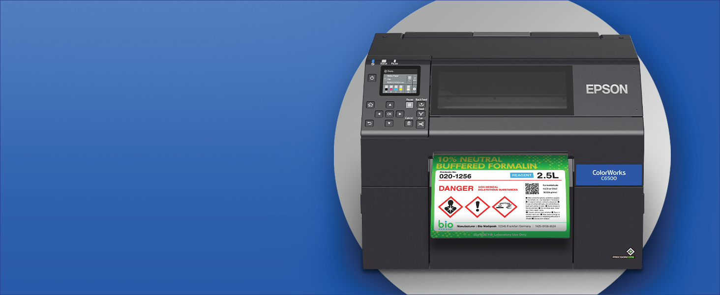 Epson-engineered PrecisionCore® TFP® printhead technology delivers ultra sharp text and precise barcodes. It also produces varying droplet sizes that, coupled with a 1200 x 1200 dpi resolution, can produce a huge gamut of vibrant, accurate colours, smooth gradations and fine image details. So, whether the challenge is to produce complex informational labels or high-quality product labels, the CW-C6000 series is up to the challenge.